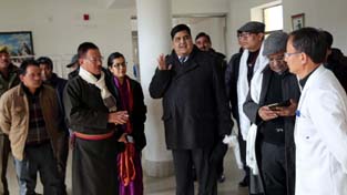 Chief Secretary B B Vyas during inspection of an office in Leh.
