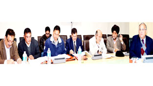 Chief Secretary B.R Sharma chairing a meeting at Jammu on Monday.