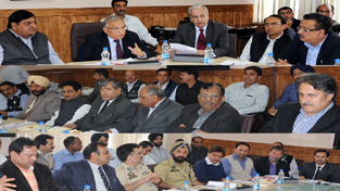 Chief Secretary, B R Sharma reviewing Durbar move arrangements in a meeting at Srinagar on Tuesday.