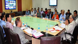 Chief Secretary BR Sharma chairing a meeting at Jammu on Friday.