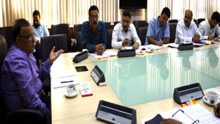 Chief Secretary, BR Sharma chairing Empowered Committee meeting in Srinagar on Monday.