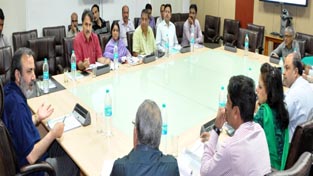 Chief Secretary Iqbal Khandey chairing a committee meeting of RIOF at Jammu on Monday.