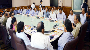 Chief Secretary, Iqbal Khandey chairing a meeting at Civil Secretariat on Wednesday.