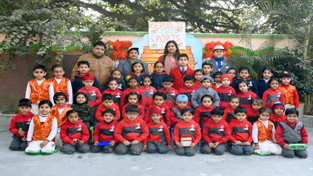 Children posing for a group Photograph during Sports Day celebration at Narulas The First Step School on Friday.