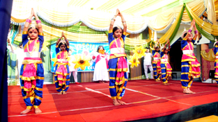 Children presenting cultural item during annual day programme by Sahara Special School at Jammu on Saturday.