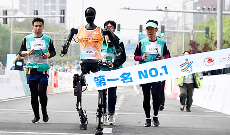 Among 20 competing teams, Tiangong Ultra from the Tiangong Team won the race among the robots with a timing of two hours 40 minutes, slower than over an hour and two minutes clocked by Elias Desta of Ethiopia who was declared the winner of the men’s race.