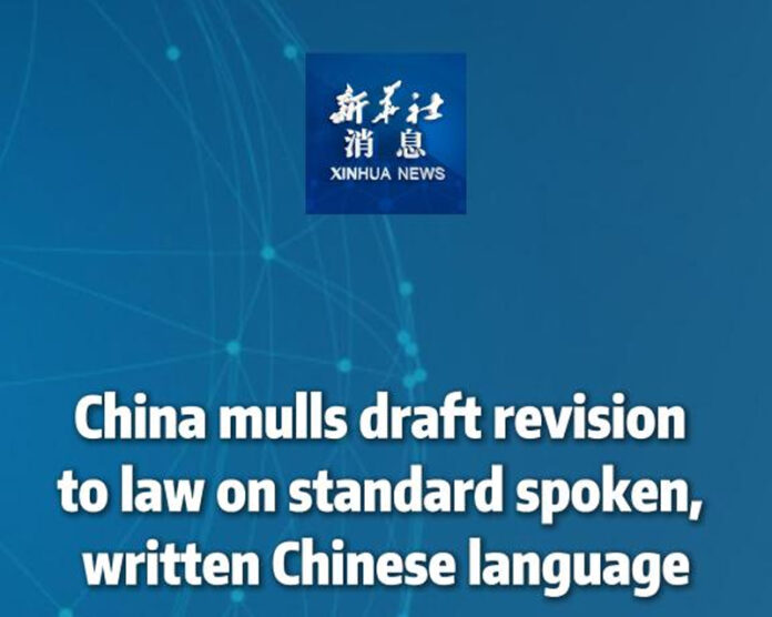 BEIJING, Dec 22 : Chinese lawmakers are considering a draft revision to the Law on the Standard Spoken and Written Chinese Language.