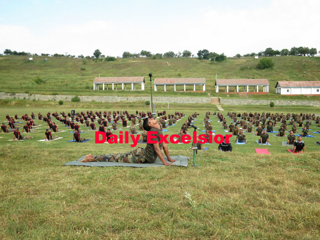 Chinar Corps performing yoga during International Yoga Day on Sunday…..Excelsior\Aabid Nabi