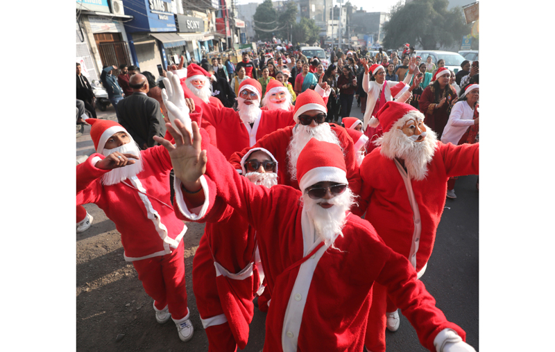JAMMU, Dec 22: All J&K Christian Community Fellowship, Jammu took out Christmas Carol procession here today to celebrate Christmas festival. The Christmas Carol procession was conducted with the objective to celebrated Christmas festival with all the people, to promulgate communal harmony and to spread message of peace of Jesus Christ.