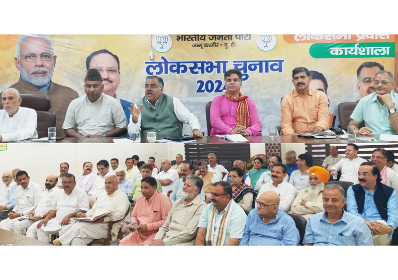 JAMMU, June 16: BJP National General Secretary & J&K Prabhari Tarun Chugh, J&K BJP President Ravinder Raina, General Secretary (Organization) Ashok Koul, MP Lok Sabha Jugal Kishore Sharma, MP Rajya Sabha Er Gulam Ali Khatana, former Dy CM Kavinder Gupta and former MP (Rajya Sabha) Shamsher Singh Manhas addressed a series of meetings at party Headquarters, Trikuta Nagar, Jammu.
