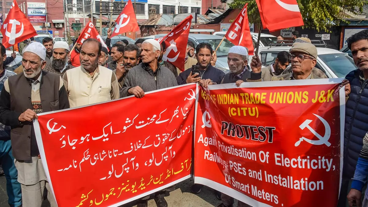 Srinagar, Nov 6: The Centre of Indian Trade Unions (CITU) on Monday staged a protest here against the privatisation of electricity, railways, public sector undertakings and the installation of smart meters across Jammu and Kashmir.