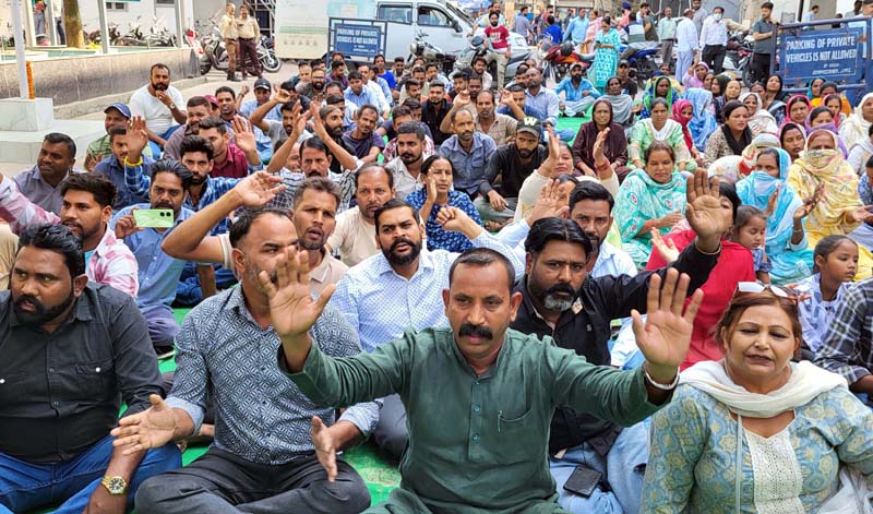JAMMU, Oct 25: The Union of Civic Safai Karamcharis (SKCs) of Jammu Municipal Corporation (JMC) here today staged a protest demonstration under the leadership of their president, Rinku Gill.