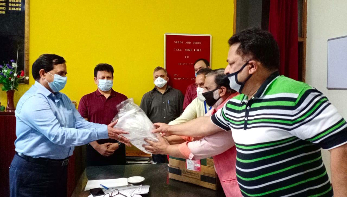 Civil Society members giving N-95 masks to Principal of Dental College at Jammu on Wednesday. By Daily Excelsior - April 29, 2020 Share FacebookTwitterWhatsAppPinterestLinkedinCopy URLTelegramEmailTumblrReddItPrintKoo Civil Society members giving N-95 masks to Principal of Dental College at Jammu on Wednesday. Civil Society members giving N-95 masks to Principal of Dental College at Jammu on Wednesday. Follow our WhatsApp channel