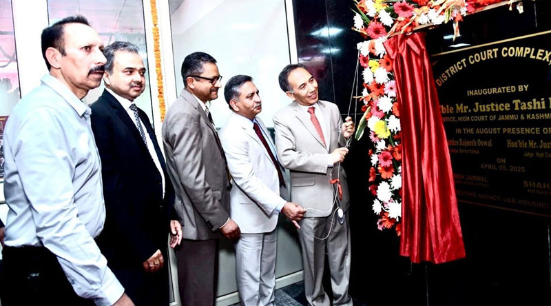 KATHUA, Apr 5: Chief Justice, High Court of Jammu & Kashmir and Ladakh, Tashi Rabstan, today inaugurated the newly constructed Court Building at the District Court Complex here.