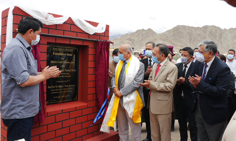 Leh, July 20: Chief Justice, High Court of J&K and Ladakh, Justice Pankaj Mithal, today laid the foundation stone for the new District Court Complex at Melongthang in Leh in the presence of Judge, High Court of J&K and Ladakh, Justice Tashi Rabstan, who is also the Administrative Judge for Leh.