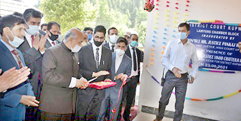 KUPWARA, June 23: Chief Justice of High Court of Jammu and Kashmir, Justice Pankaj Mithal, accompanied by Judge High Court of Jammu and Kashmir and Administrative Judge for District Kupwara, Justice Vinod Chatterji Koul, today inaugurated bar block, bar room and library at District Court Complex, Kupwara, during his visit to the district.