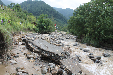 The floods also washed away two-kilometer long road connecting scores of villages of the area, Government High School building, CAPD building, electricity poles, water supplying pipes, vehicles and standing crops in the fields.