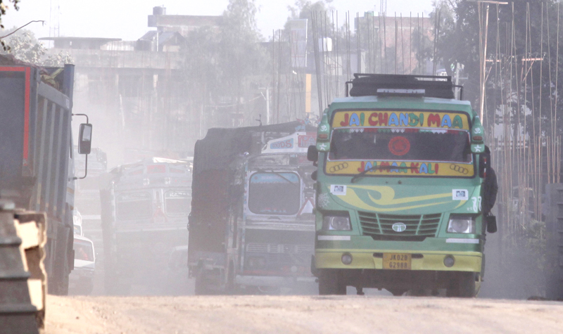 ‘Clouds of dust’ on Jammu-Akhnoor road due to ongoing widening work by SP Singla Constructions Pvt Ltd. — Excelsior/Rakesh By Daily Excelsior - April 24, 2019 Share FacebookTwitterWhatsAppPinterestLinkedinCopy URLTelegramEmailTumblrReddItPrintKoo 'Clouds of dust' on Jammu-Akhnoor road due to ongoing widening work by SP Singla Constructions Pvt Ltd. — Excelsior/Rakesh ‘Clouds of dust’ on Jammu-Akhnoor road due to ongoing widening work by SP Singla Constructions Pvt Ltd. — Excelsior/Rakesh Follow our WhatsApp channel