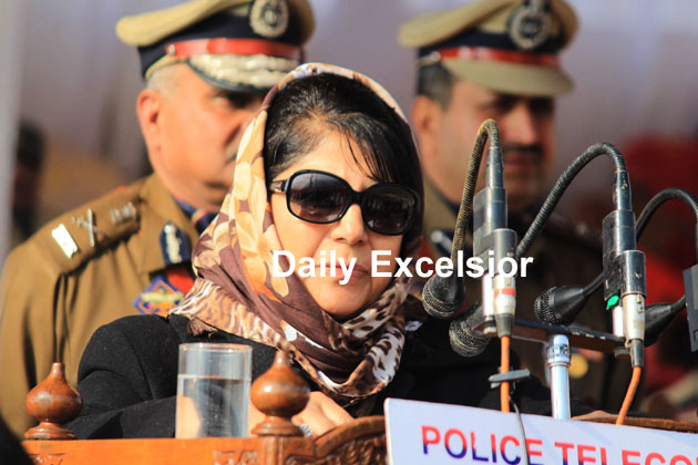 CM Mehbooba Mufti addresses passing out parade of police constables at Commando training center in Lethpora….Excelsior\Younis Khaliq