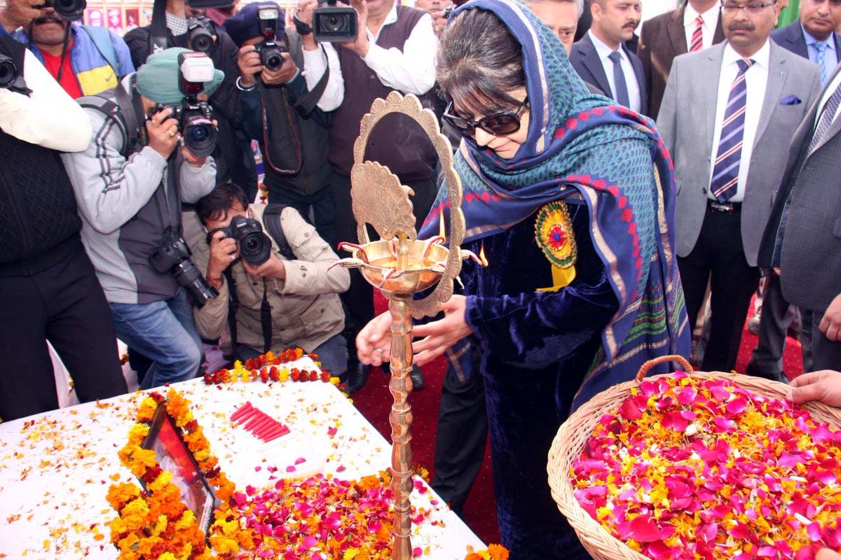 After inaugurating the mela, Mehbooba Mufti paid floral tributes to the jawans and officers of J&K Police who laid down their lives while performing their duties.