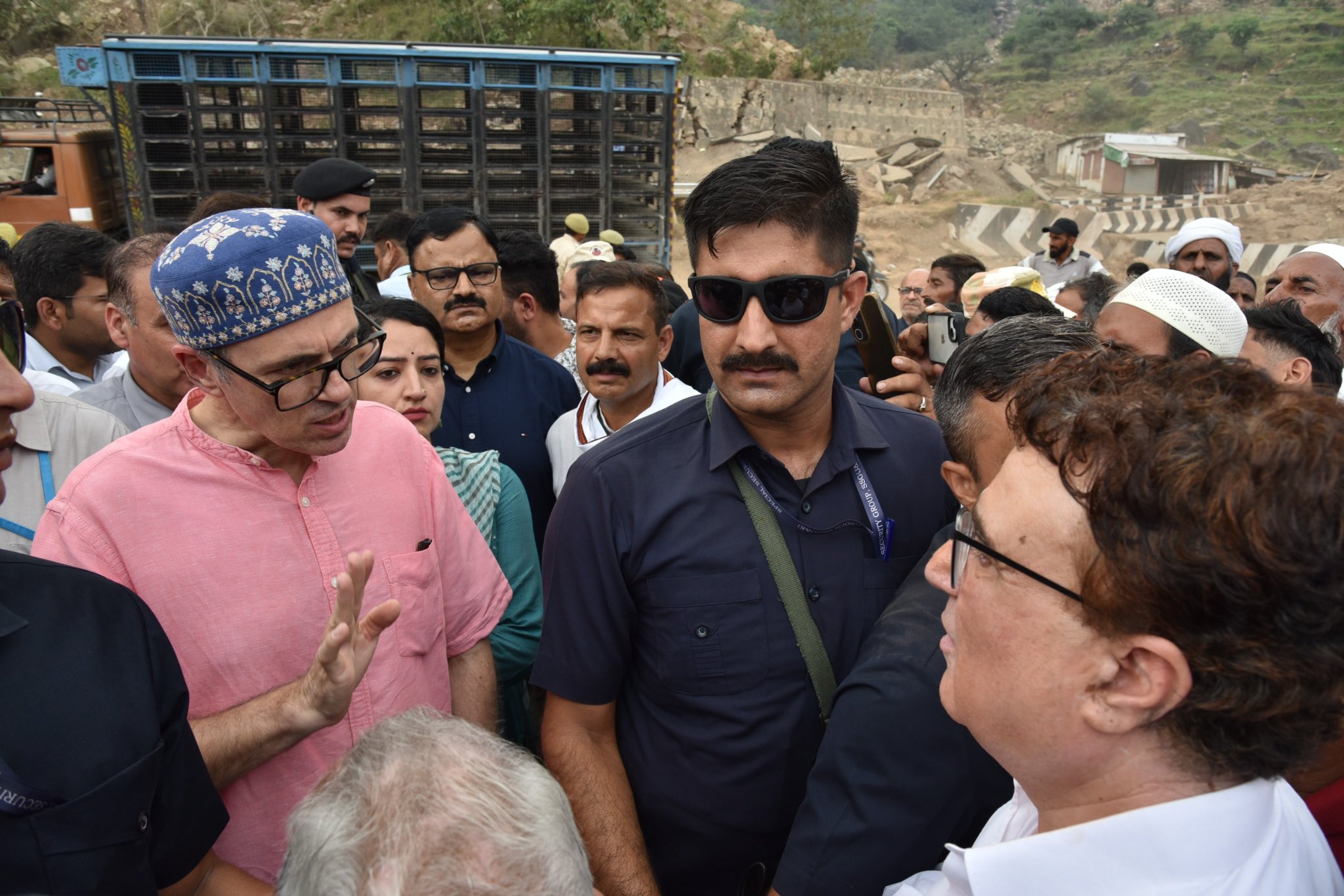 Jammu, Sep 17: Jammu and Kashmir Chief Minister Omar Abdullah on Wednesday inspected the ongoing road restoration works at the severely damaged Tharad area along the vital Jammu-Srinagar national highway.