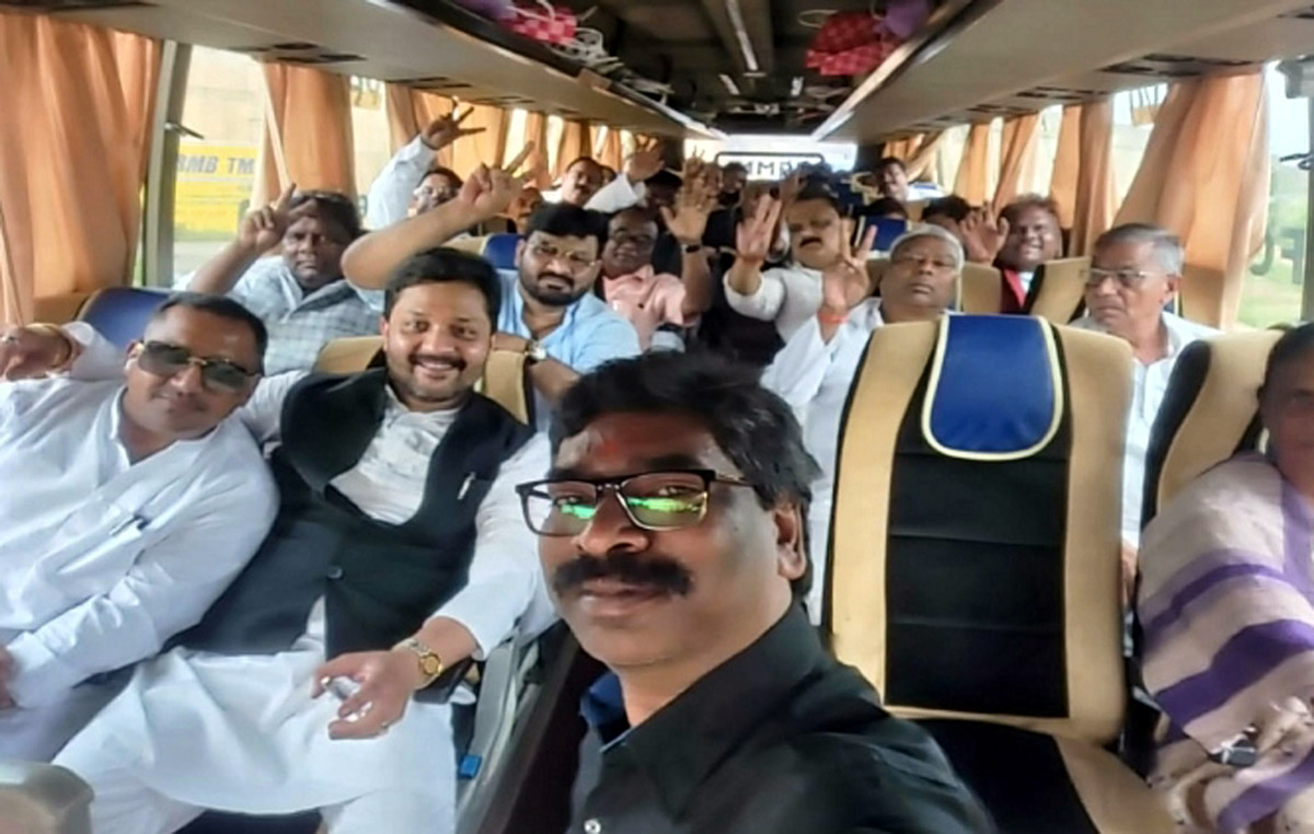 RANCHI, Aug 27: Amid the deepening political crisis in Jharkhand due to the uncertainty over Chief Minister Hemant Soren’s fate as an MLA, Soren and ruling legislators were seen leaving for some unknown destination on three buses.