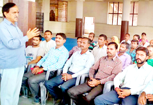 NMC president, Subash Shastri, addressing a workers’ meet at Jammu.