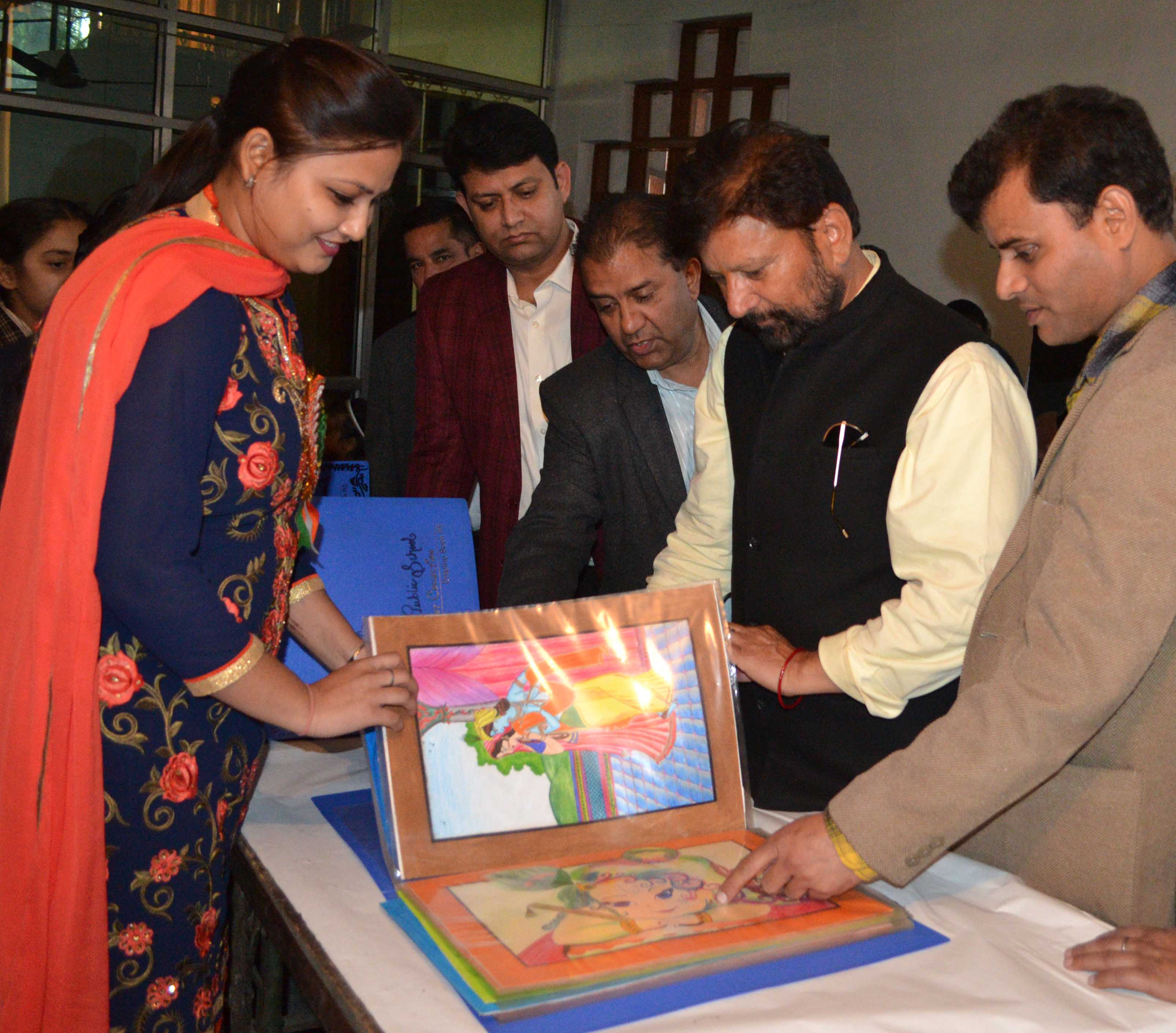 The Painting Exhibition-Cum-Prize Distribution function was organised by Poonam Bhalgotra, M.K. Wadhera, RituWadhera, Ajay Kumar, Meenakashi Kotwal, Aprana Sharma, Svita Jena, Sonia Verma and Murdla.