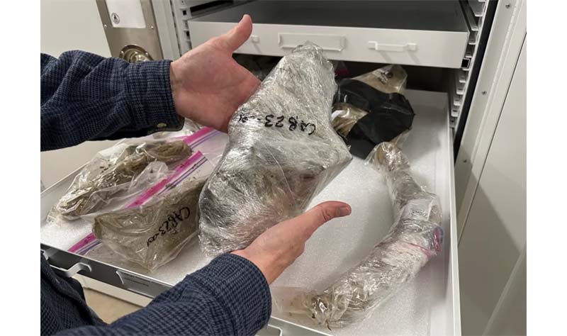 Other bones also have been wrapped in plastic and placed in drawers. The bones will remain in plastic for at least several months until the scientists can figure how to get the water out safely. The paleontologists will identify the mammoth species later, Person said.