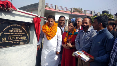 KATHUA, Nov 11: Govern-ment is committed to provide equal opportunities to the people of all three regions and welfare of weaker sections of the society. This was stated by the BJP MLA from Kathua, Rajiv Jasrotia after inaugurating series of developmental works including inauguration of lanes at Changran costing Rs 10.00 Lakh, inauguration of lane and drain at Chak Desa Singh costing Rs 8.00 lakh, black topping of ITI and Shamshan Ghat road at Kathua. costing Rs 60.00 lakh, inauguration of lanes at Chak Sona Nupa costing Rs 8.00 lakh, inauguration of lanes at Lachipur costing Rs 7.5 lakh, inauguration of lanes at Chak Gadadhar costing Rs 8.00 lakh, inauguration of lanes at Govindsar B costing Rs 6.00 lakh making it total Rs 1.17 crore in his constituency.