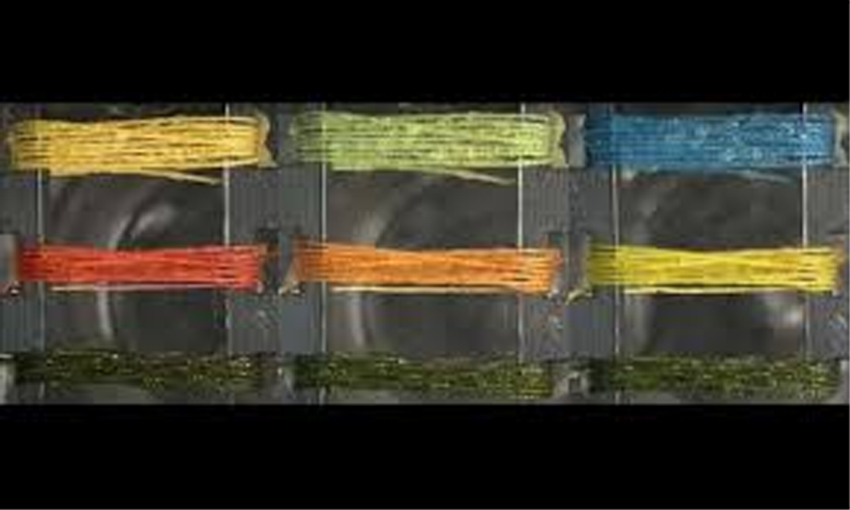 Researchers from Tufts University in the US demonstrated that the threads can be read visually, or even more precisely by use of a smartphone camera, to detect changes of colour due to analytes as low as 50 parts per million.