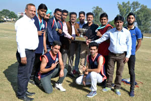 Prof. Avtar Singh Jasrotia, Director, Directorate of Sports and Physical Education awarded trophy to the winning team of SPMR College of Commerce, Jammu.