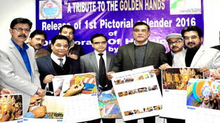 Commissioner Secretary Industries and Commerce Shailendra Kumar and others releasing calendar of Handicrafts Department on Tuesday.