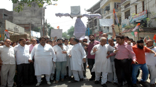 Former Minister and PCC vice-president Raman Bhalla and DCC Jammu Urban president Anil Chopra were leading the protest march. A large number of Congress activists assembled at PCC office Shahidi Chowk in the morning and started protest march towards Residency Road and Raghunath Mandir Chowk. They were shouting slogans against PDP-BJP Government for total failure to provide basic amenities to the general public.