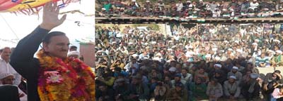 Saroori on reaching at Sarthal was accorded a warm welcome where thousands of villagers from Agral, Moharwari, Dada, Karool, Angara, Bhagra, Ghan, Pura, Chandali and other adjoining areas took out a massive victory rally on foot in Sarthal where participants raised slogans in favour of Saroori and hail his effort for fighting for the rights and demands of the people of Sarthal.