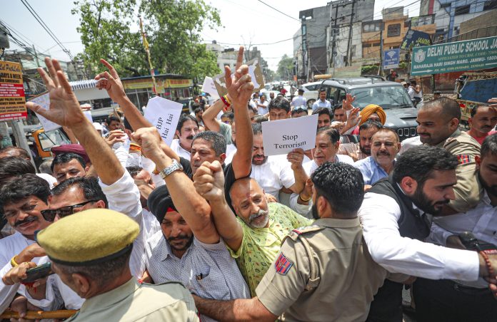Led by Jammu and Kashmir Congress president Waqar Rasool Wani and working president Raman Bhalla, the protesters raised slogans against the BJP and its government for allegedly failing to check terrorism and demanded accountability.