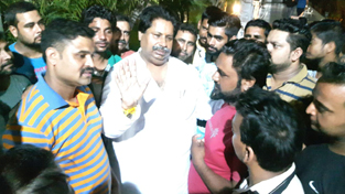 Cong leader Raman Bhalla interacting with public on Thursday.