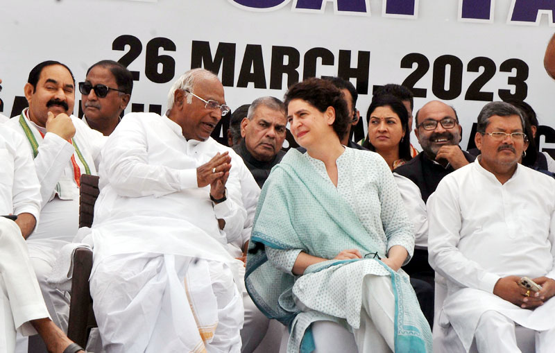 NEW DELHI, Mar 26: Congress workers across the country on Sunday organised “Sankalp Satyagraha” to protest against disqualification of Rahul Gandhi from Lok Sabha, with party president Mallikarjun Kharge lashing out at the ruling BJP and asking why it is pained if fugitives such as Nirav Modi and Lalit Modi are criticised.