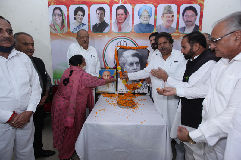 Several senior leaders Kanta Bhan, Rajnish Sharma, Indu Pawar (President Mahila Congress), Shiv Dev Singh, Ashok Sharma, Shabir Ahmed Khan, Hari Singh Chib, Masood Choudhary (Adv), highlighted the achievements of Indira Gandhi and described her as an iron lady, an able administrator and great visionary leader. Senior leaders Pawan Raina, Sanjeev Panda, Dwarka Choudhary, Kamal Singh, Vajay Sharma (Seva Dal), Suresh Doga, Col Swarn Singh , Dr Karan Bhagat, Dr RK Khajuria, Madan Lal Malagar and others were also present.