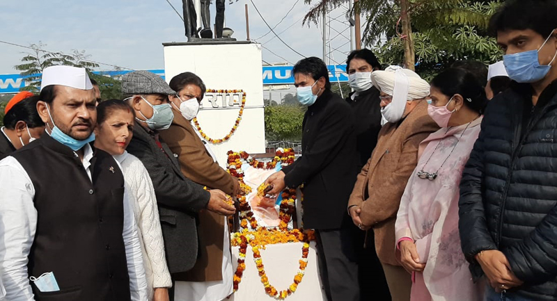 JAMMU, Jan 30: The Jammu and Kashmir Pradesh Congress Committee president, Ghulam Ahmed Mir led the Congress Party today to pay rich tributes to top Congress leader Mahatma Gandhi at Gandhi Chowk, Satwari in Jammu.