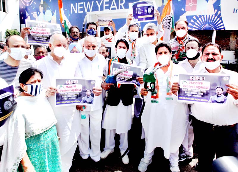 Meanwhile, Congress staged peaceful symbolic protests in various districts of Kashmir against unprecedented price hike in petrol, diesel, gas and other essential commodities and slammed the Centre Govt for failing to check inflation.
