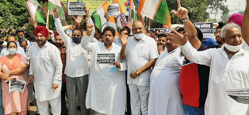 The protest was organized by DCC Rural, Jammu led by Hari Singh Chib and Miran Sahib and RS Pura block units. Senior PCC leaders, Mulla Ram and Raman Bhalla were leading the protest.