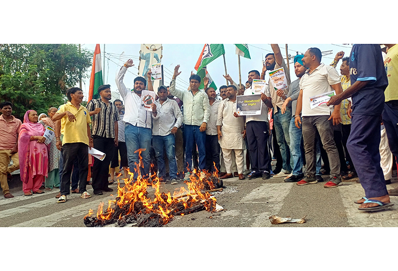 JAMMU, July 21: Congress Party activists today staged a protest in Jammu North against recent surge in terrorist attacks across the Jammu region.