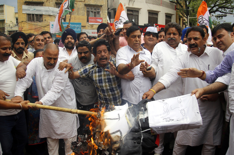 The protest was led by former minister and Congress contesting candidate from Jammu-Poonch parliamentary seat Raman Bhalla and former minister Mula Ram and assisted by Congress spokesperson Ravinder Sharma, former Minister Shabir Khan, ex-MLAs Shiv Dev Singh, Manjeet Singh, Balwan Singh, Indu Pawar, senior leaders Rajnish Sharma, Manmohan Singh, DCC president Jammu-U Vikram Malhotra, Hari Singh Chib (DCC head for Jammu Rural) and others. Click here to watch video