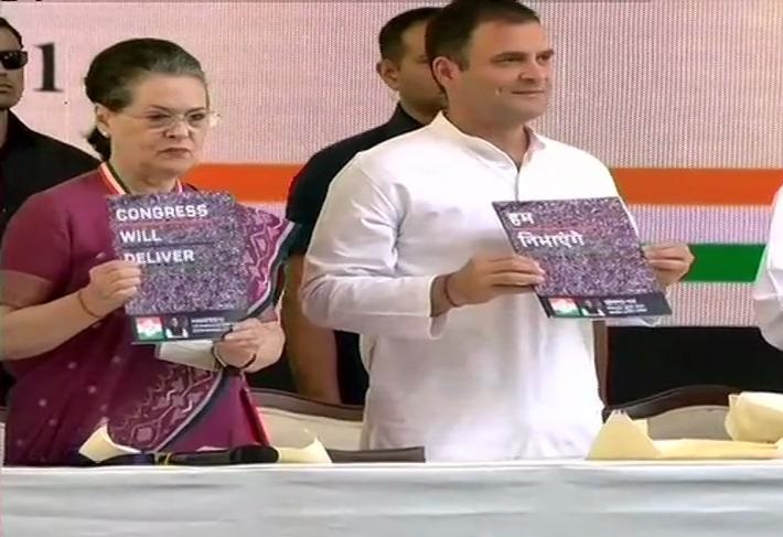 The manifesto was released by party president Rahul Gandhi, former prime minister Manmohan Singh, UPA chairperson Sonia Gandhi and senior leader P Chidambaram among others.