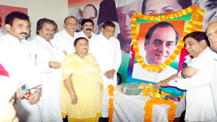In Jammu, the 71st birth anniversary of former Prime Minister was celebrated by the Congress party at the PCC headquarters, Shahidi Chowk.