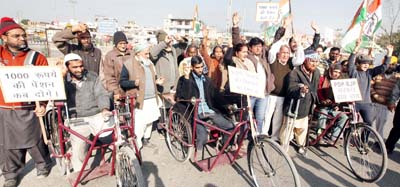 The protest rally was taken out in Bhagwati Nagar under the guidance of MR Sharma, Ward president of Congress for Bhagwati Nagar, while JL Kaul, block president and Vinay Sharma, general secretary, DCC Jammu Urban, were also present. The protest rally was largely attended by the socially alienated persons, who are waiting for the already announced release of their enhanced pensions for quite some time.