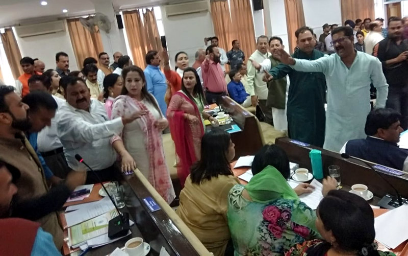 Congress and BJP Councillors during a protest in GHM of JMC on Wednesday. By Daily Excelsior - November 6, 2019 Share FacebookTwitterWhatsAppPinterestLinkedinCopy URLTelegramEmailTumblrReddItPrintKoo Congress and BJP Councillors during a protest in GHM of JMC on Wednesday. Congress and BJP Councillors during a protest in GHM of JMC on Wednesday. Follow our WhatsApp channel