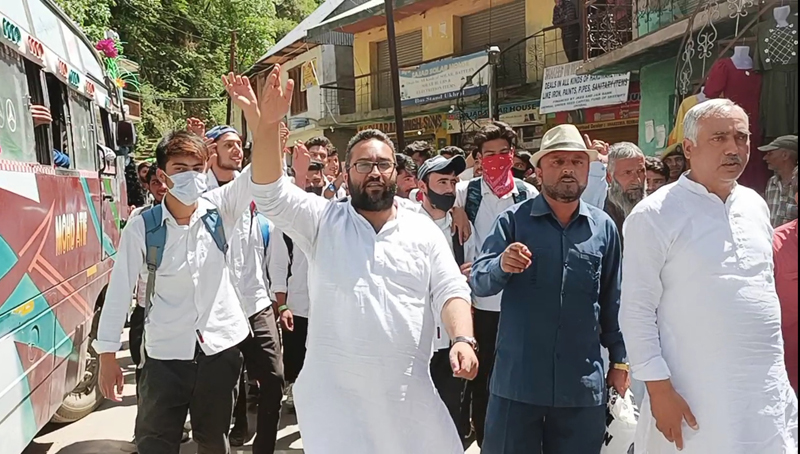 RAMBAN, May 14: Congress continued its protest in support of students and their demands in Ukhral.