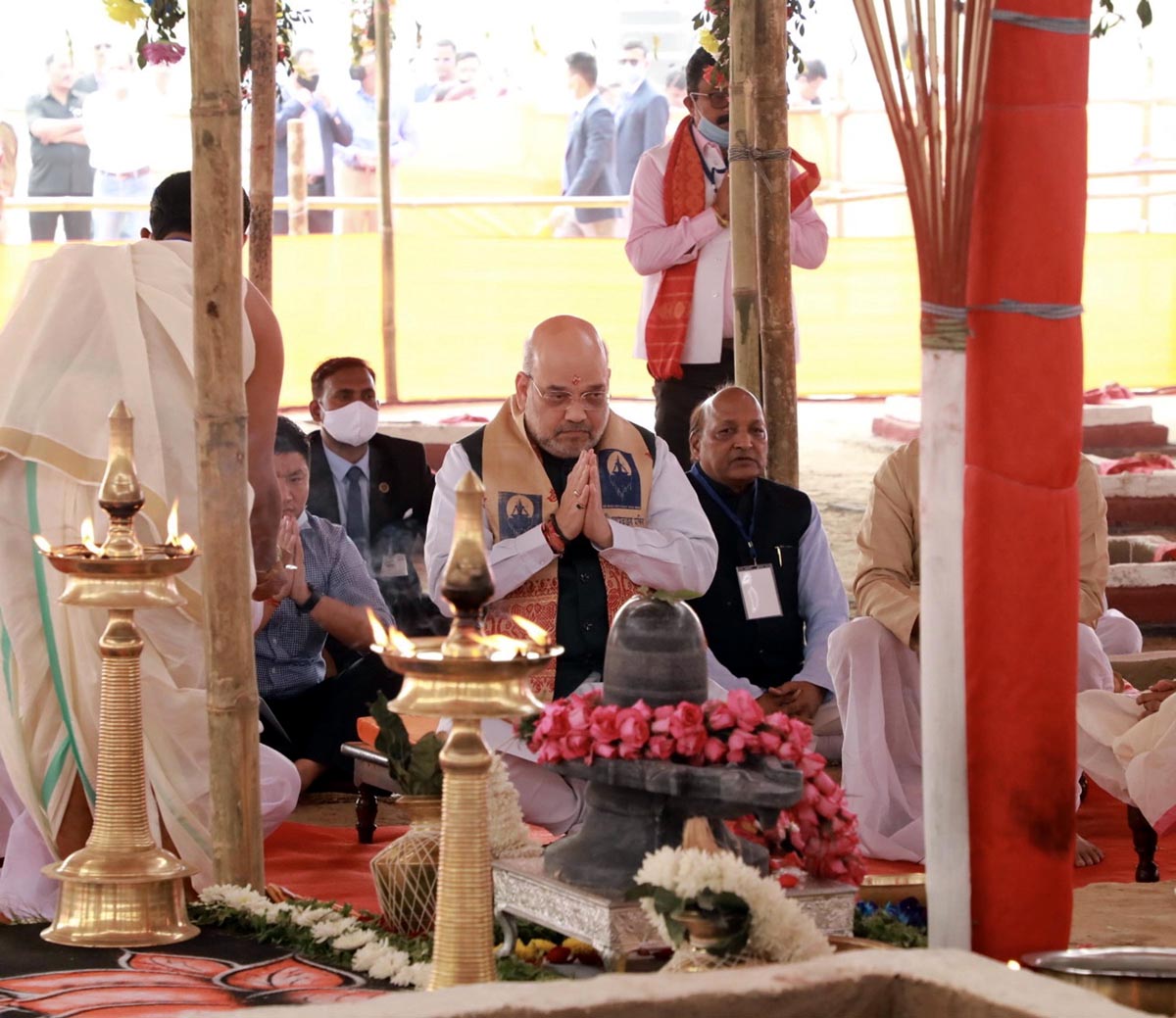 Union Home Minister Amit Shah at Prathistha Mahotsav of Maha Mritunjay temple in Nagaon (Assam) on Thursday. (UNI)